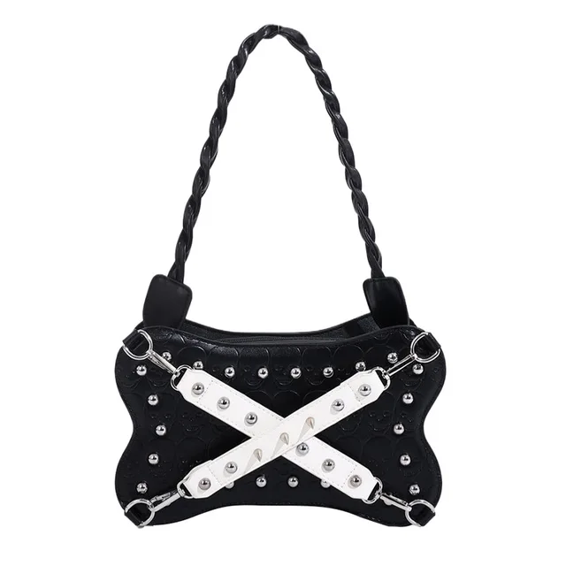 Fashionable Woman's Multi-functional Underarm Hair Small Shoulder Bag with Rivets and Slanted Strap Bag